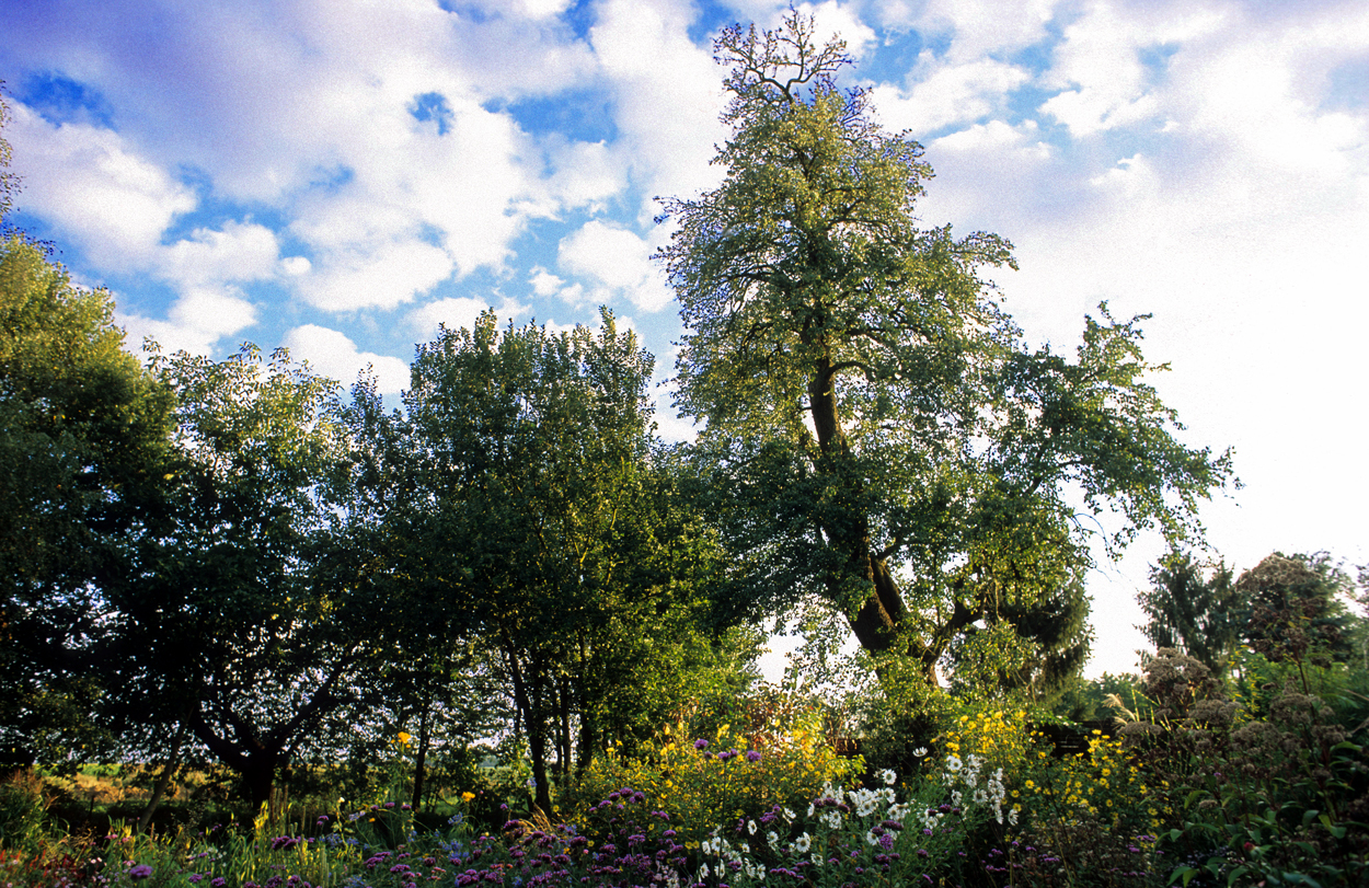 Ein alter Baumbestand im Garten ist durch nichts zu ersetzen. Die alte Birne halb rechts trägt immer noch reiche Frucht.