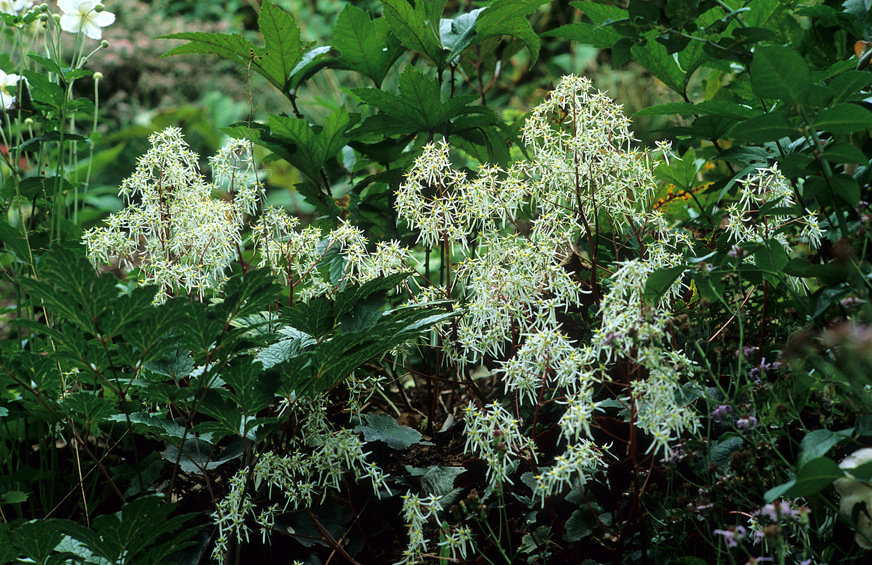 Saxifraga cortusifolia var. fortunei unter Actaea (Cimicifuga) simplex 'Brunette'.