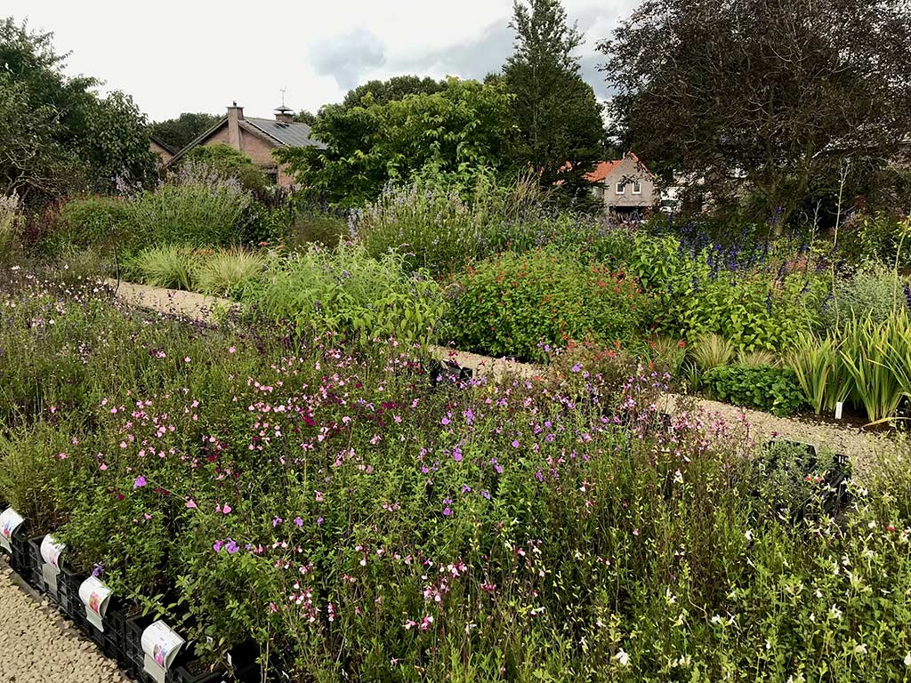 Dass wir uns hier im katholischsten Teil der NL befinden, merkt man nur der Gegend, nicht aber dieser charmanten Oase von Linda und Roger Bastin an, die übrigens die Nationalen Sammlungen Salvia, Lavandula, Santolina, Rosmarinus und Thymus halten. Hinter ihrem alten Bauernhof liegt die Gärtnerei an einem für niederländische Verhältnisse steilen Hang.