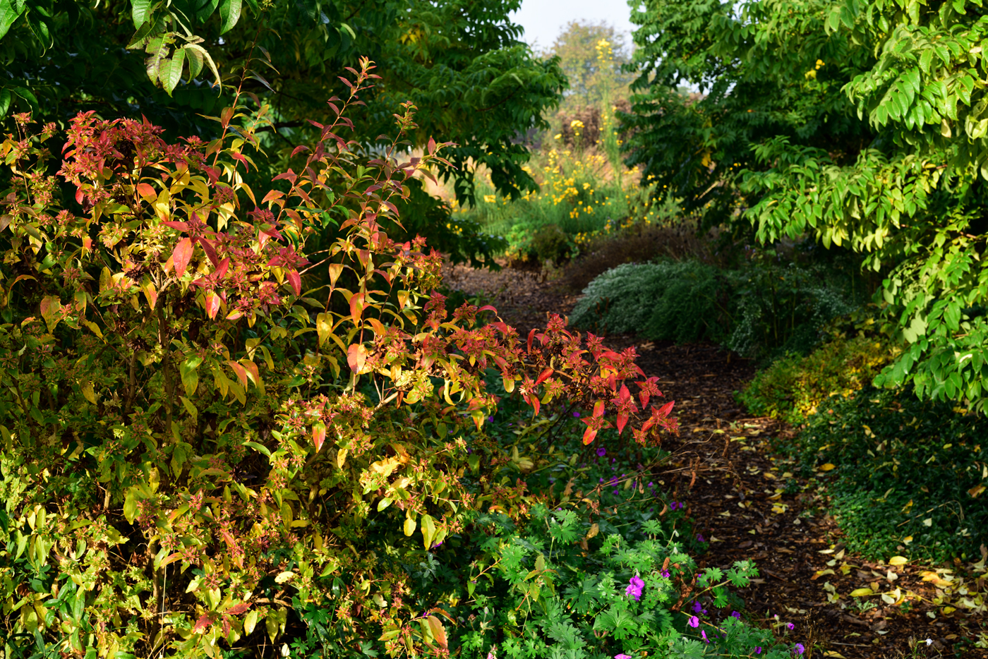 Herbstfärbung von Abelia mosanensis unter Phellodendron amurense