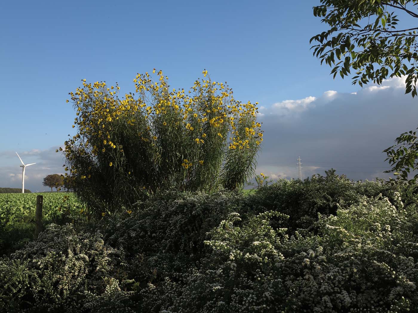 Helianthus salicifolius, die Weidenblättrige Sonnenblume oder wie wir am linken Niederrhein auch sagen: Hippieblume (nach Hermann Gröne), wird oft als Solitärstaude gepflanzt und setzt sich dann, je nach Pflanzpartnern, Boden und Klima bestandsbildend durch.