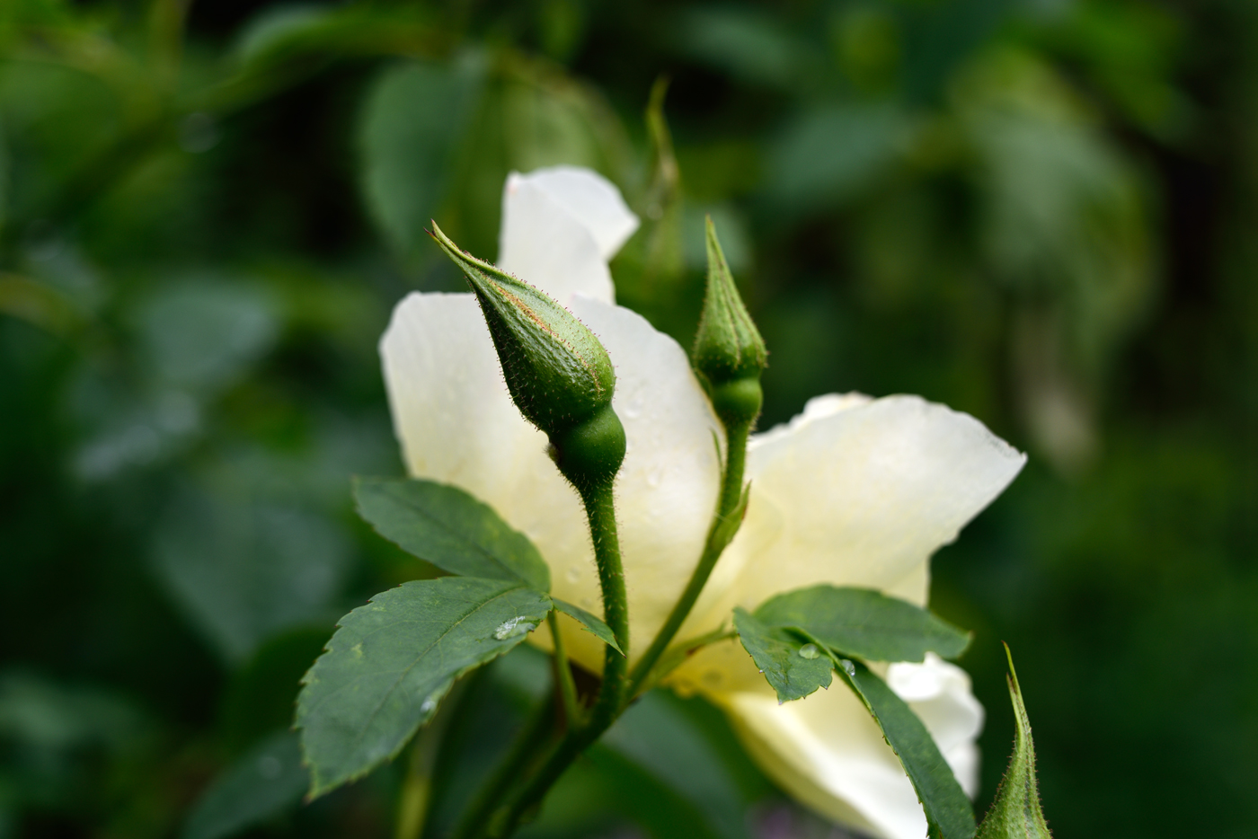 Gelb zählt nicht gerade zu den favorisierten Farben im Garten Alst. Bei der Rose ‚Golden Wings‘ mit ihren dezent schwefelgelben Blüten waren wir uns spontan einig, sie zu Frauenmantel an einer sehr lichten Stelle im Halbschatten zu platzieren. Bereits im zweiten Jahr hatte sie sich hervorragend etabliert und die typischen Rosenkrankheiten sind ihr bisher fremd geblieben.